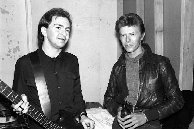 David Bowie és Gerald Casale a kulisszák mögött a Max's Kansas City night clubban, New York, 1977. november 14.